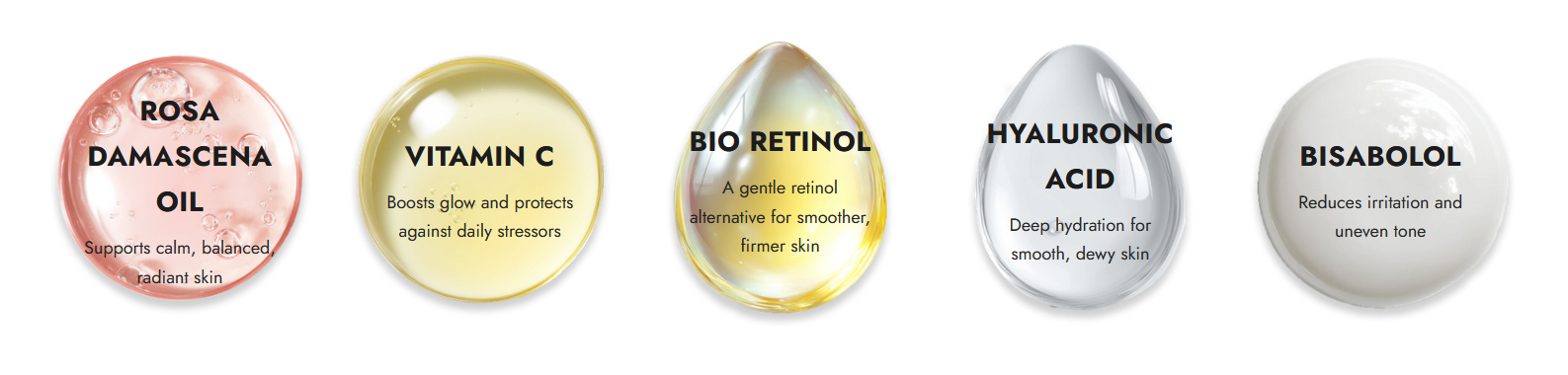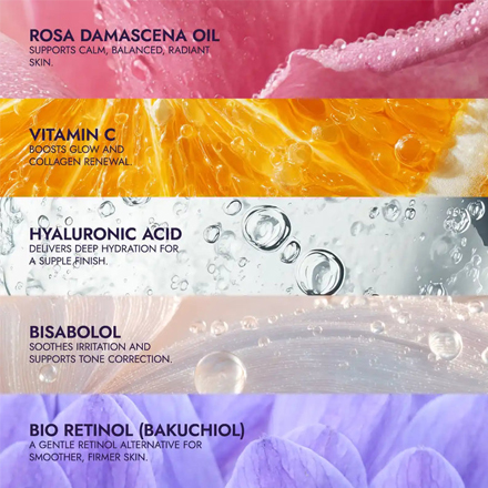 precious Rose Oil and plant-derived Bio-Retinol, it helps even out skin