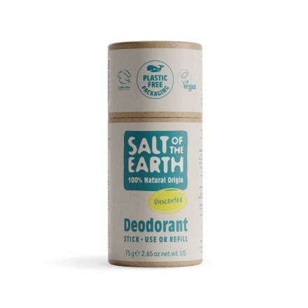Salt of the Earth, Unscented Natural Deodorant Stick 75g - Use or Refill