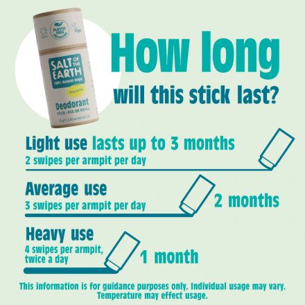 Tags: salt of the earth, unscented natural, stick, use or refill deodorant, 75g