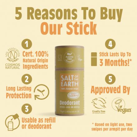 Salt of the Earth, 橙花味天然香體除臭棒 75g (補充裝)